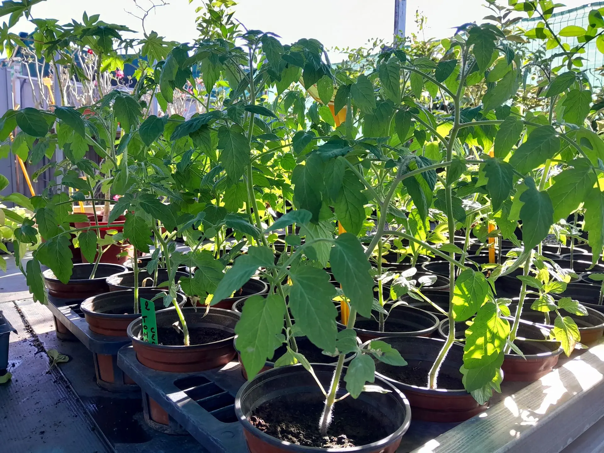 Plant de tomate cerise vendu en pot, prêt à être repiqué ou cultivé directement.